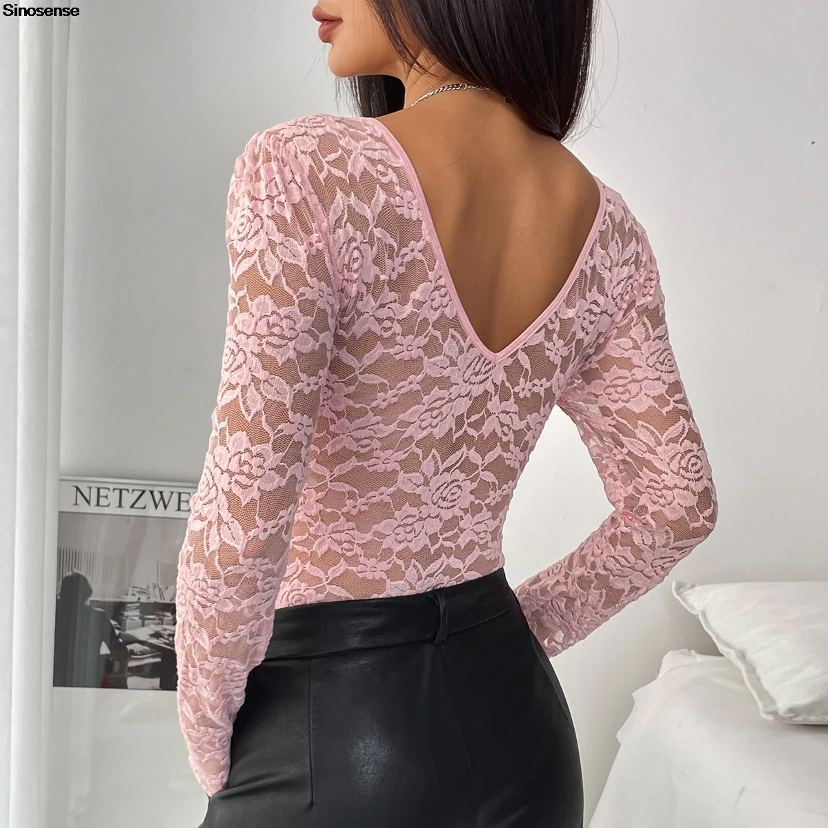 Le body corset rose à manches longues séduit par sa dentelle florale délicate et sa coupe élégante qui met naturellement la silhouette en valeur. Sa transparence subtile apporte une touche sensuelle tout en conservant un style raffiné et féminin.
