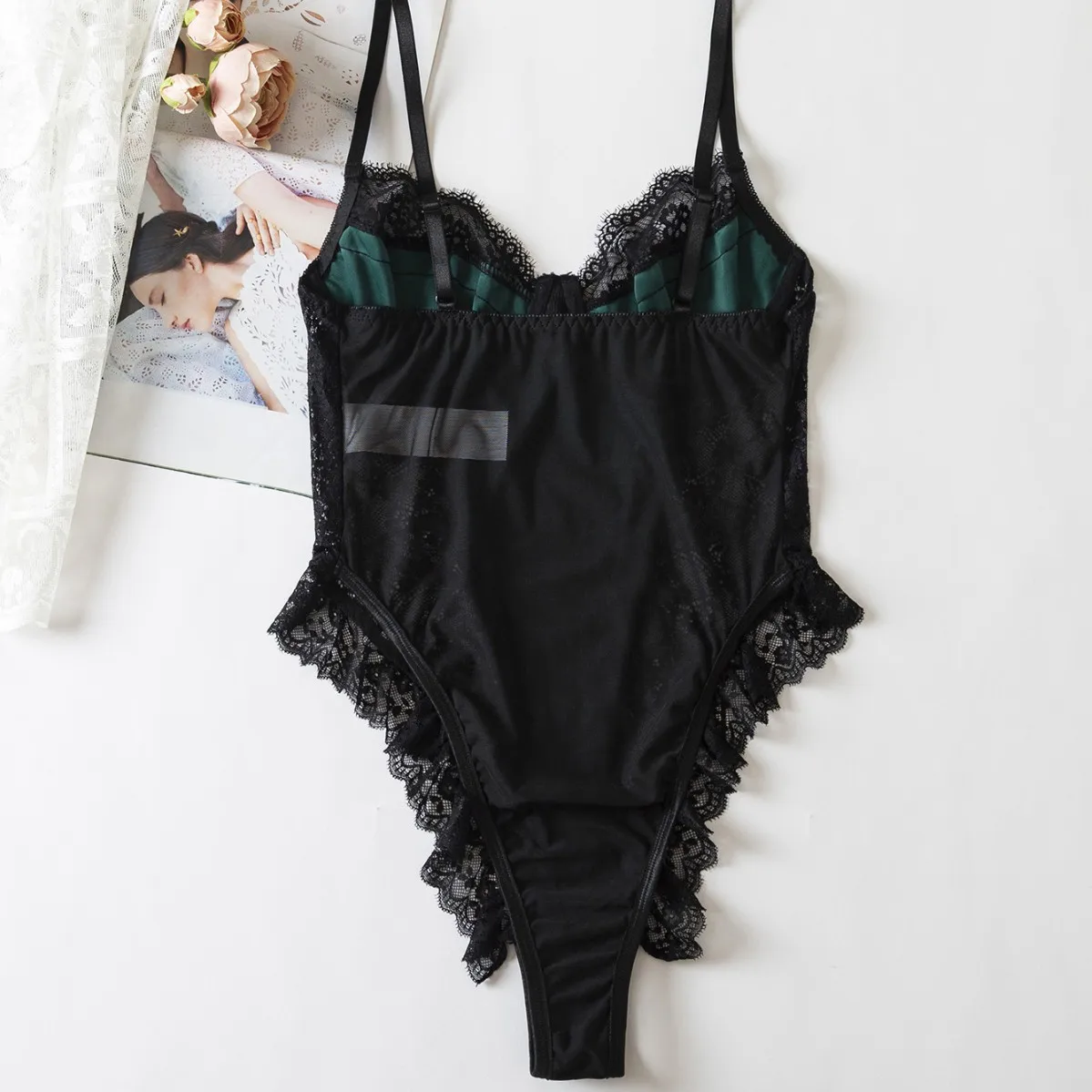 Les finitions soignées de ce body corset dentelle noire renforcent son allure féminine et intemporelle. Les bordures festonnées en dentelle noire ajoutent une touche délicate qui met subtilement la silhouette en valeur. Ce détail souligne l’élégance du modèle tout en conservant une esthétique raffinée.