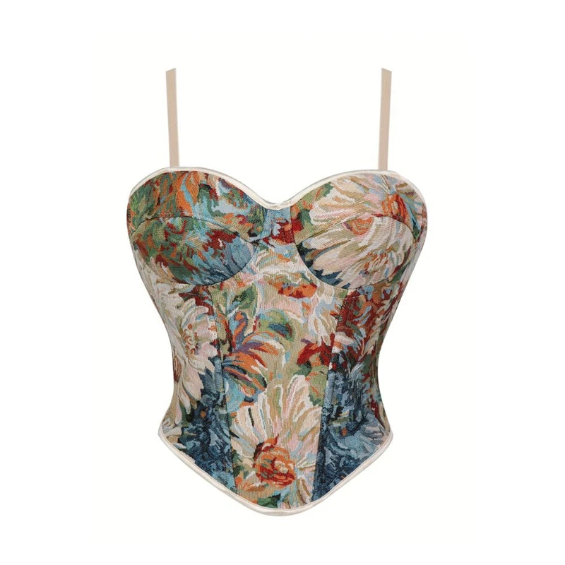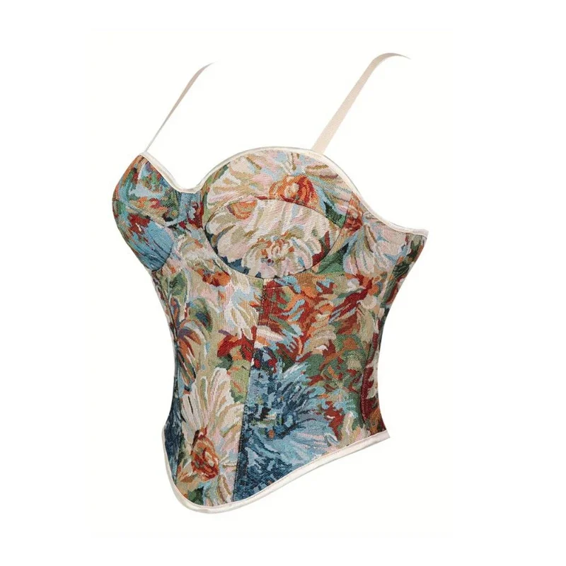 Bustier corset fleuri renaissance à bretelles : allure vintage chic et romantique en nuances pastel