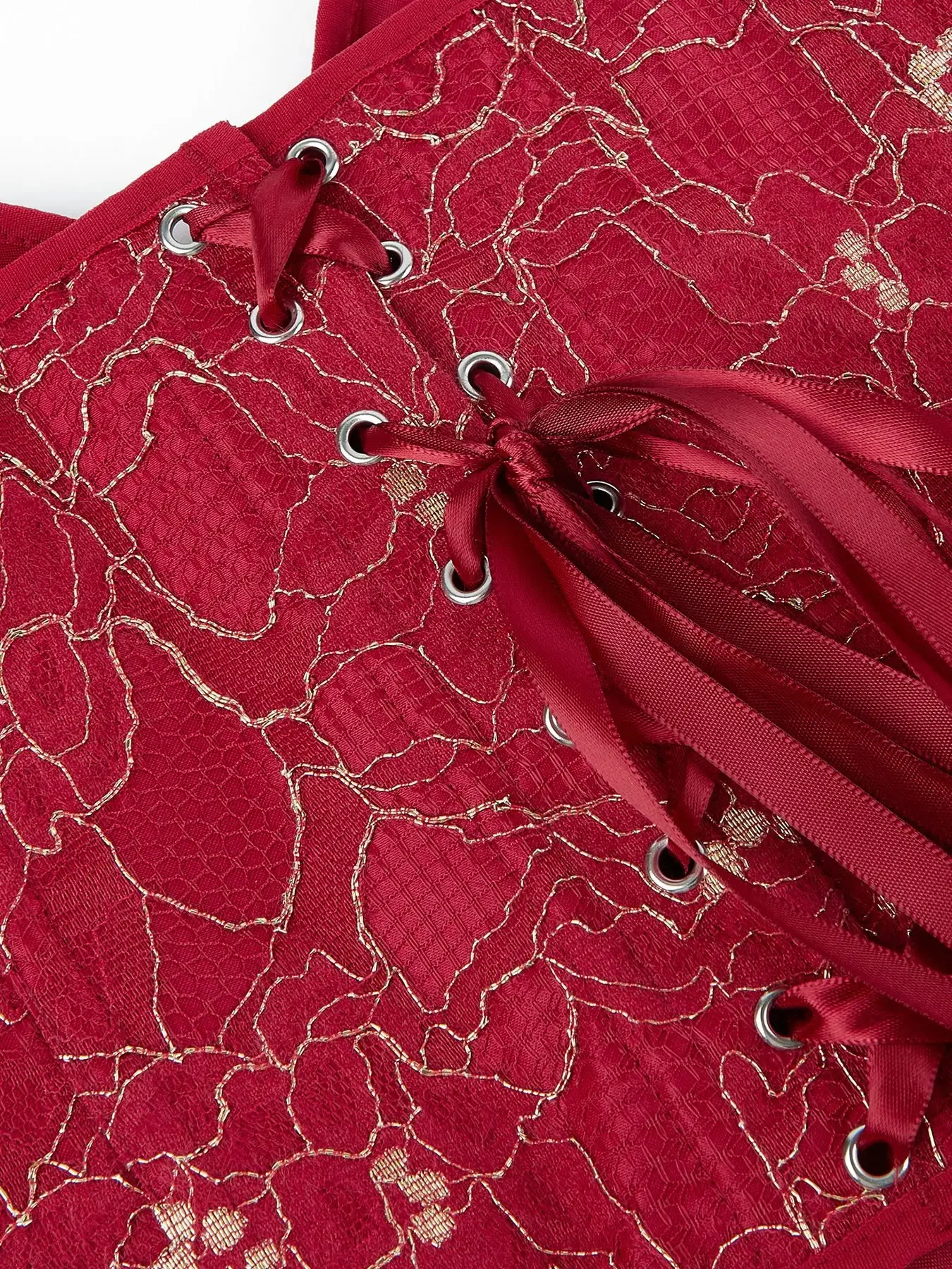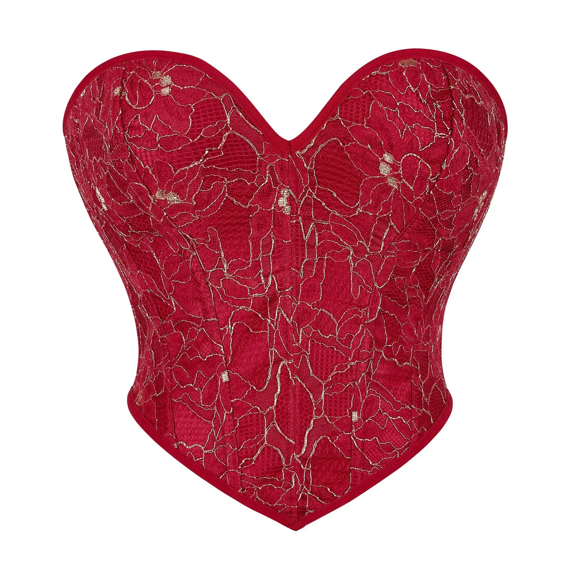 Bustier corset gothique rouge broderie dorée : une pièce intense et raffinée qui impose un style audacieux dès le premier regard.