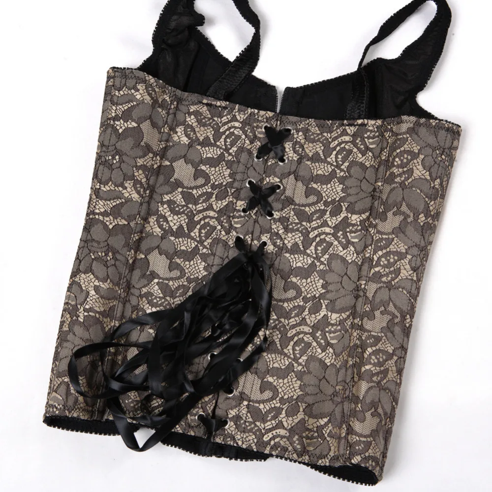 Le bustier corset gris chamarré incarne un style raffiné qui associe modernité et élégance intemporelle. Sa teinte gris profond rehaussée de détails noirs crée une allure sophistiquée qui attire naturellement le regard.