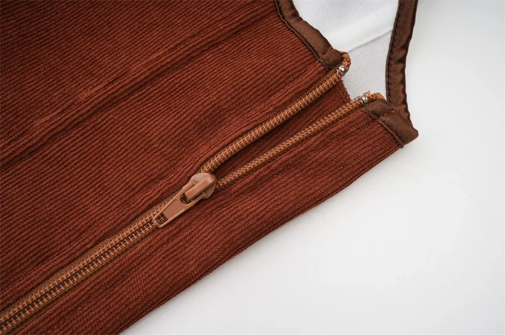 Facile à intégrer dans votre garde-robe, le bustier marron velours s’adapte à de nombreux styles. En journée, il se porte sur un tee-shirt blanc avec un jean large pour un look casual structuré.