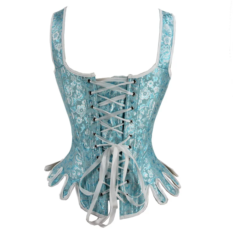 Corset bleu poudre argenté renaissance incarne une pièce lumineuse et élégante, idéale pour composer une tenue raffinée aux inspirations historiques revisitées.