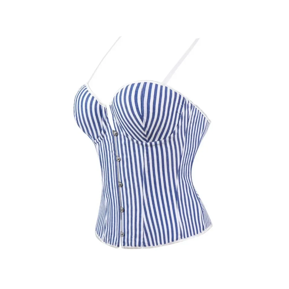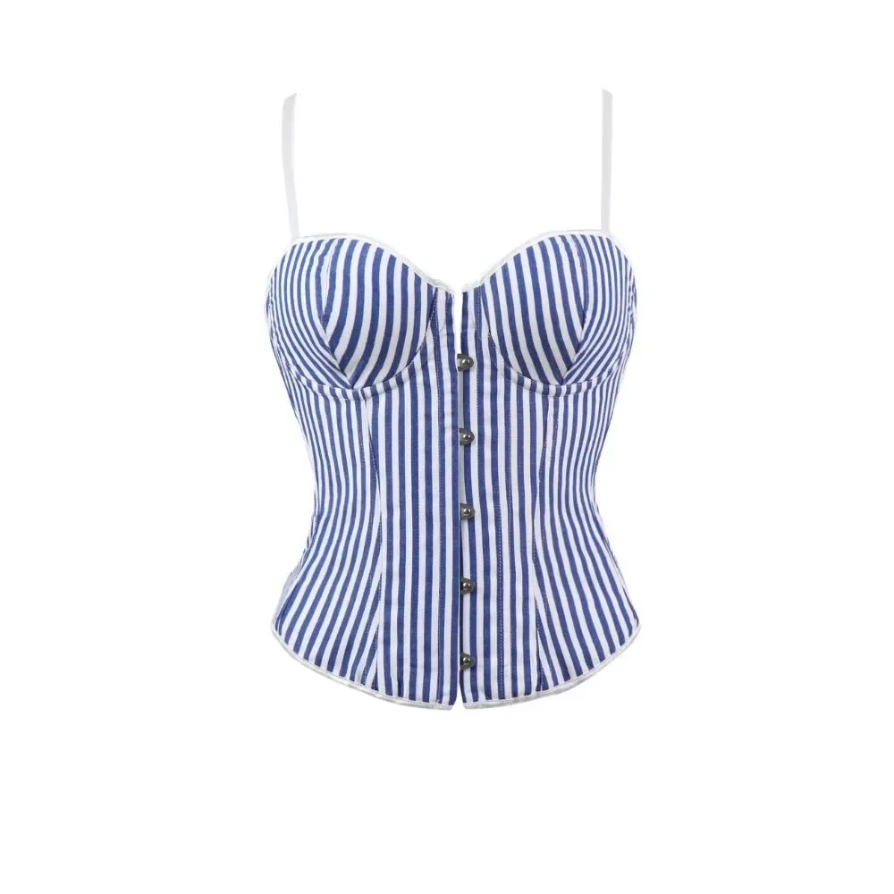 Inspiré de l’univers bord de mer, ce corset bleu et blanc s’intègre facilement dans un dressing estival comme dans une tenue plus habillée. Il incarne un équilibre idéal entre fraîcheur et sophistication.