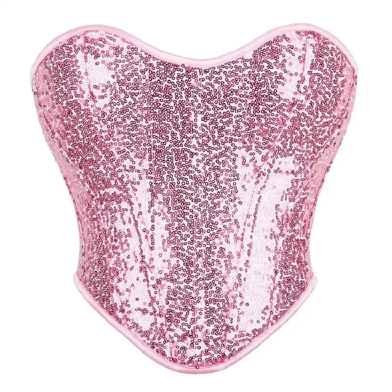 Corset bustier rose scintillant à sequins, une pièce lumineuse qui sublime instantanément la silhouette