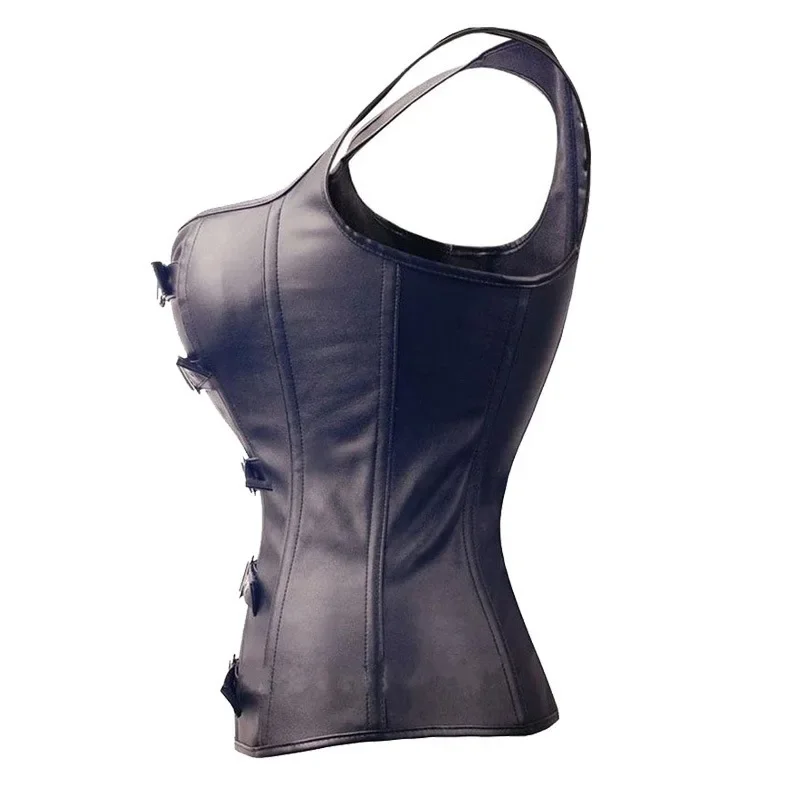 Ce corset revisite l’esthétique gothique avec une approche moderne grâce à son similicuir noir au rendu mat légèrement texturé. Son design associe lignes nettes et détails métalliques pour créer une silhouette visuellement forte, idéale pour celles qui recherchent une pièce à la fois élégante et audacieuse.