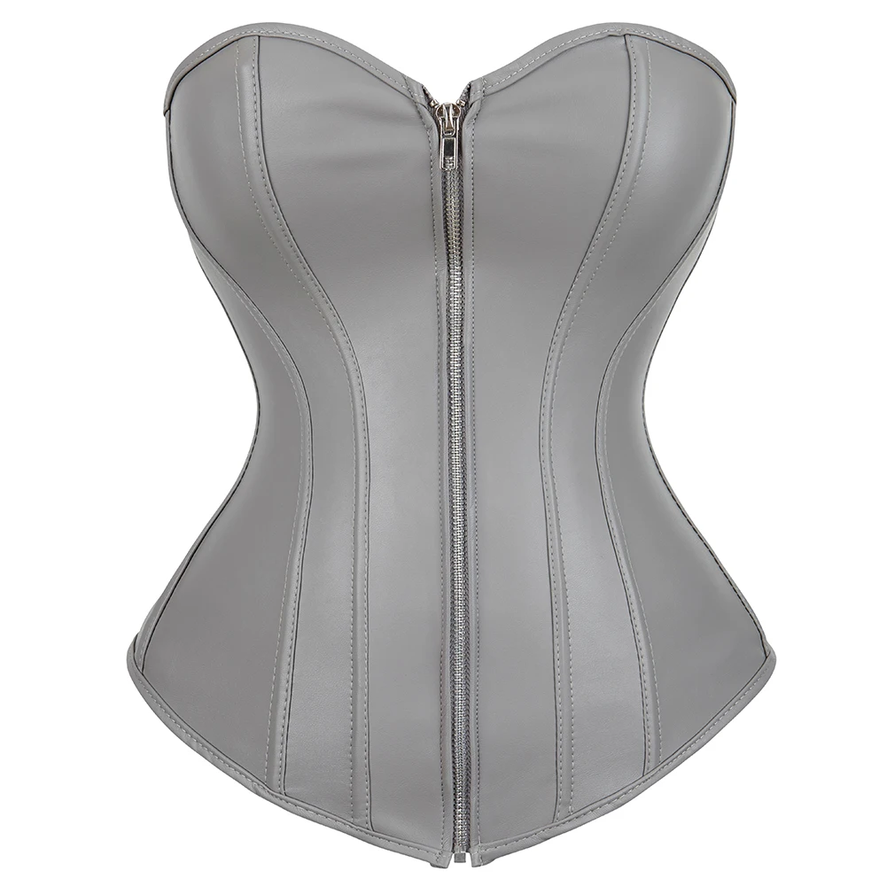 Corset gothique gris en similicuir : élégance sombre et silhouette raffinée