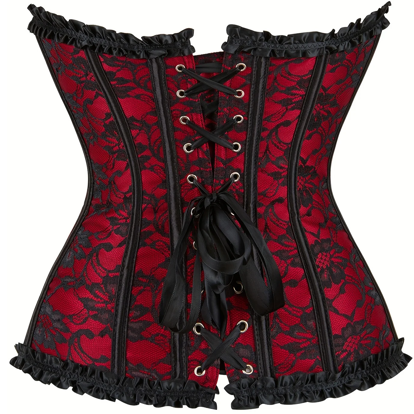Corset gothique rouge et noir grande taille XL à 5XL : une pièce intense qui sculpte la silhouette et affirme un style audacieux et captivant.