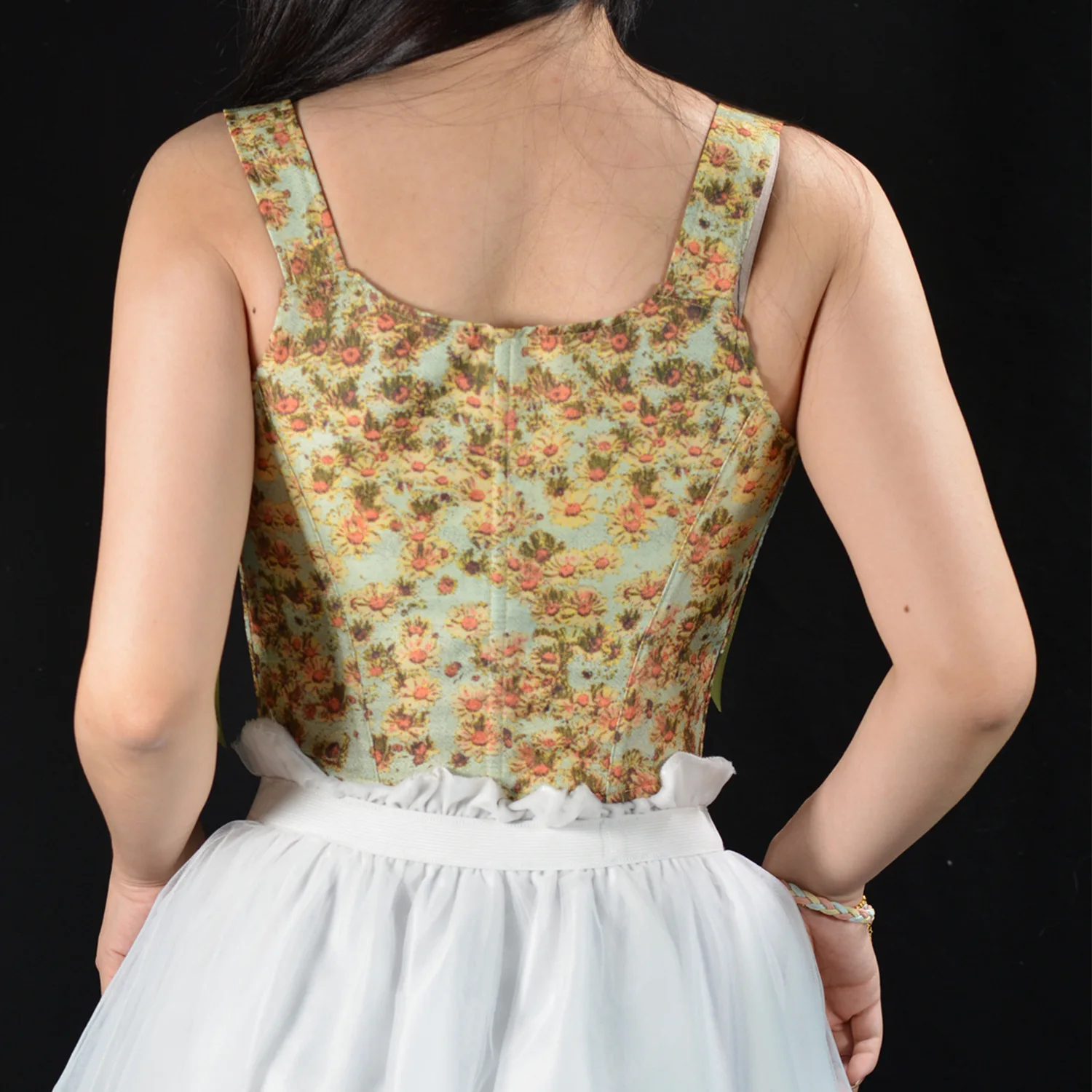 Optez pour le confort avec notre Corset Médiéval Fleuri Vert Pastel