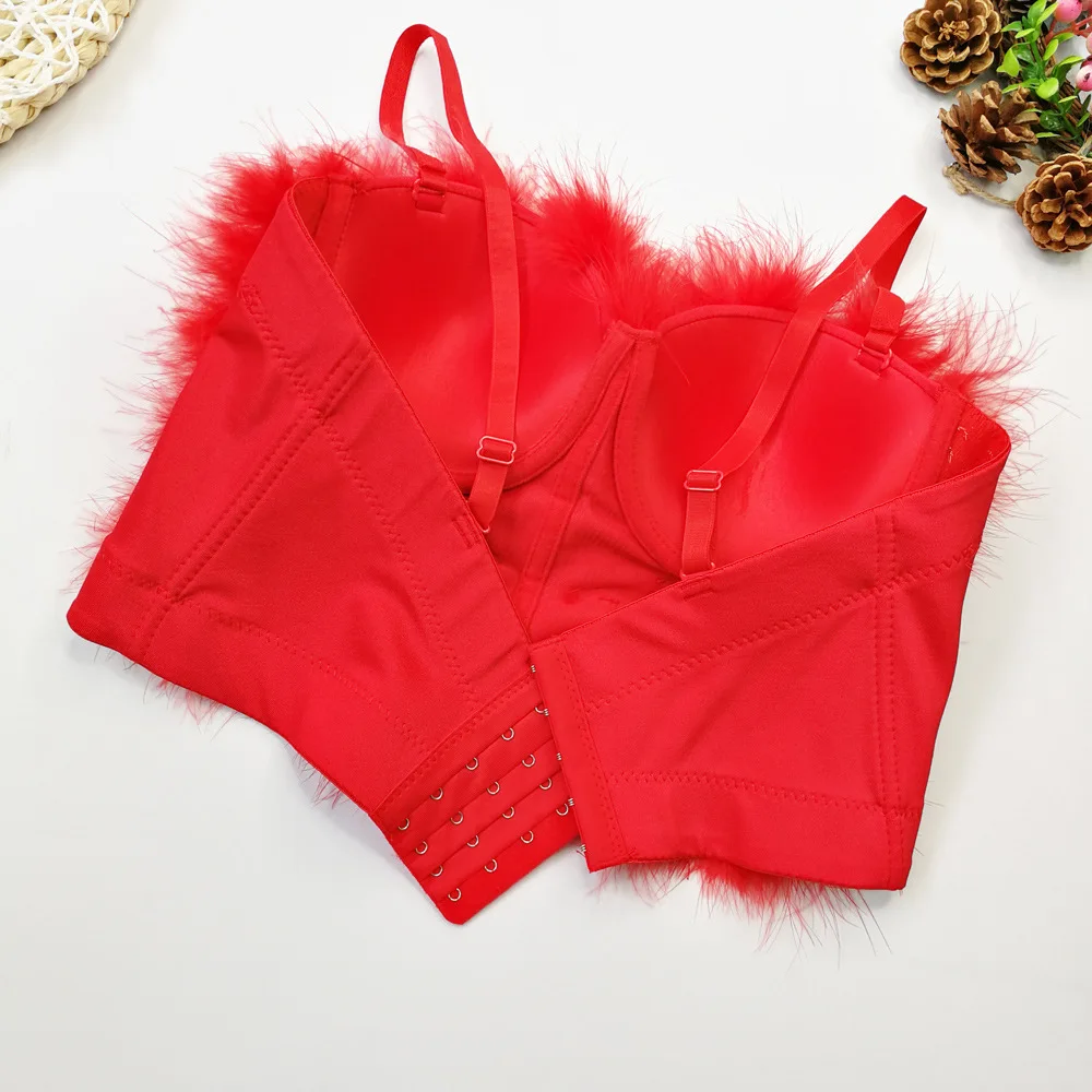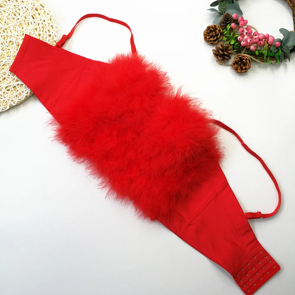 Le corset soutien-gorge rouge à plumes est une pièce de lingerie audacieuse qui attire immédiatement l’attention grâce à sa couleur rouge écarlate intense. Ce corset femme rouge combine élégance et sensualité pour créer un look à la fois glamour et sophistiqué. Son bustier recouvert de fausse fourrure plumée apporte une texture luxueuse et un effet visuel captivant.
