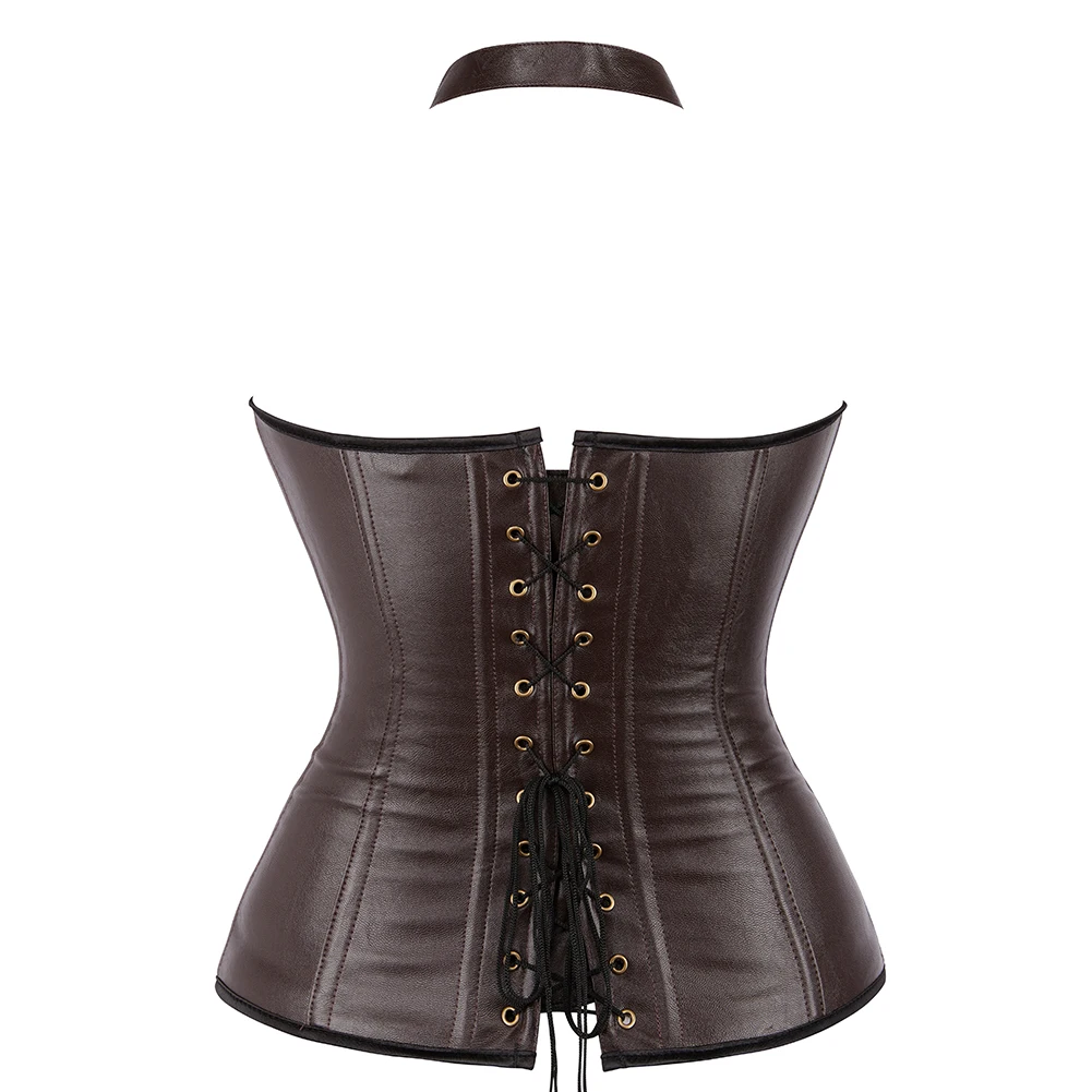 Corset steampunk marron en similicuir : élégance rétro et caractère