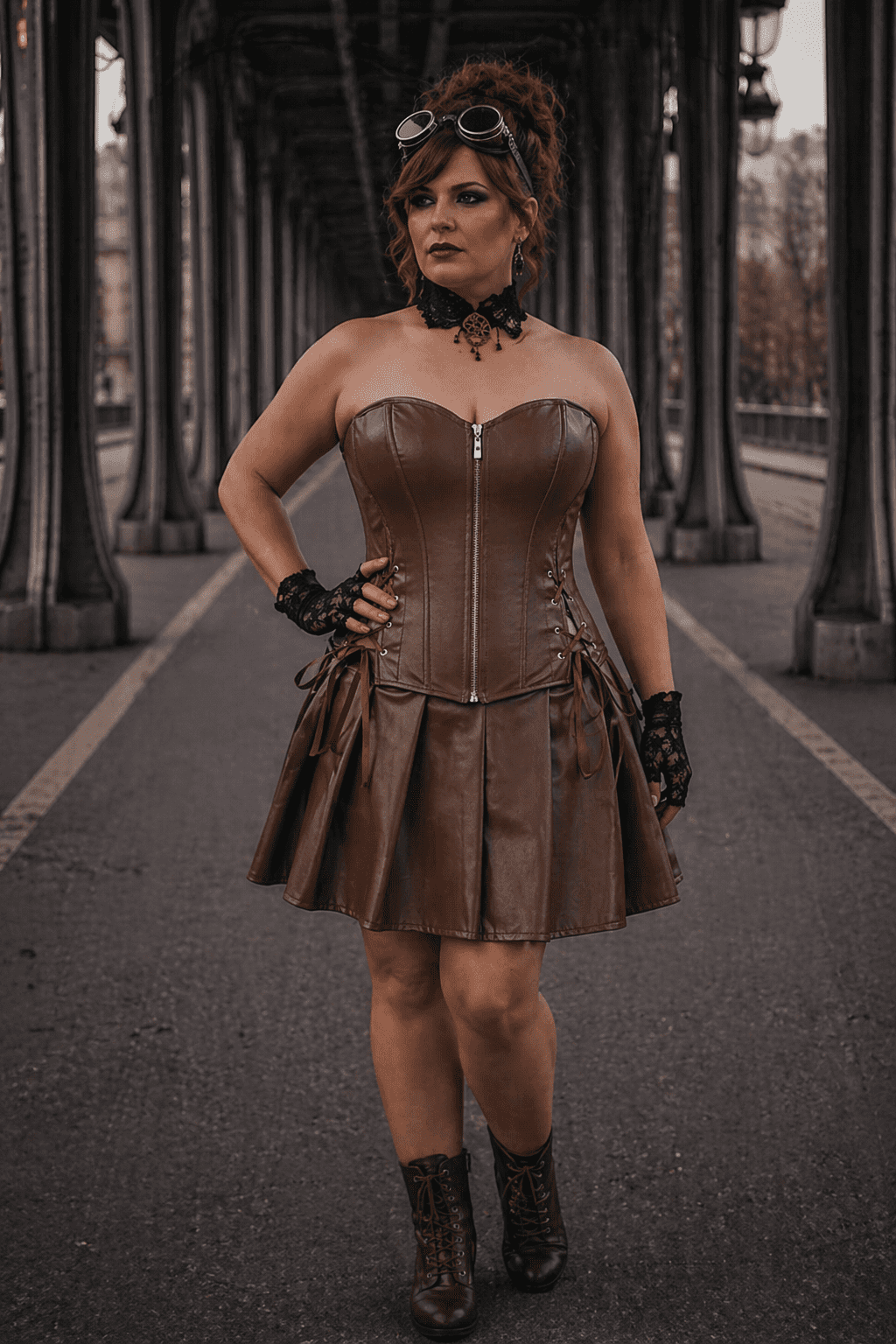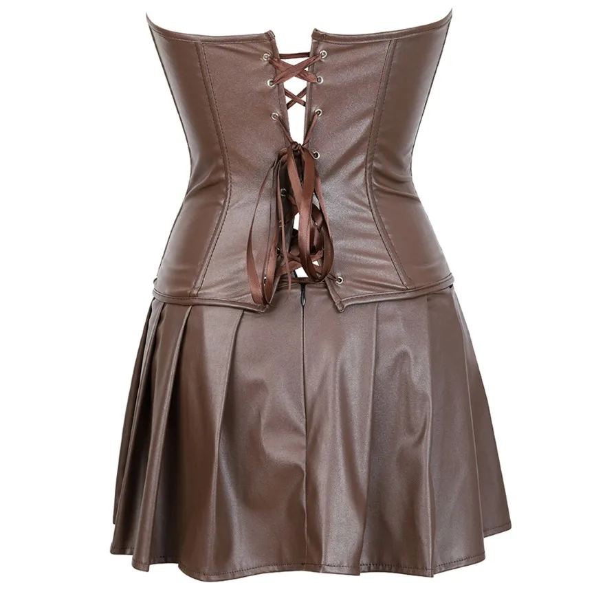 Robe corset bustier marron en similicuir : élégance et silhouette sculptée