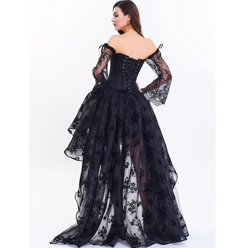 Robe corset noire steampunk à manches : élégance vintage et silhouette sculptée